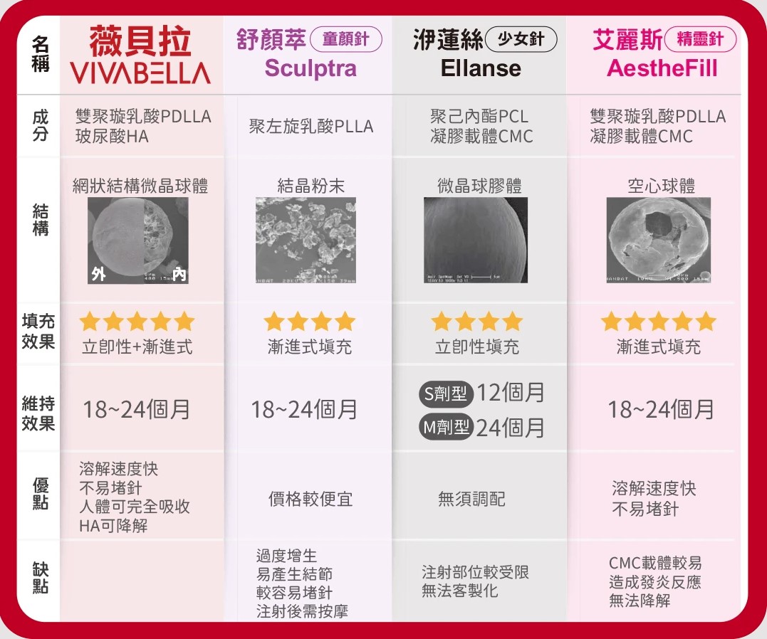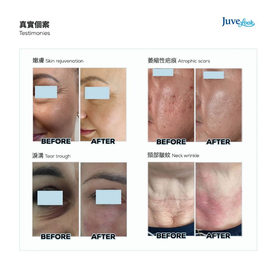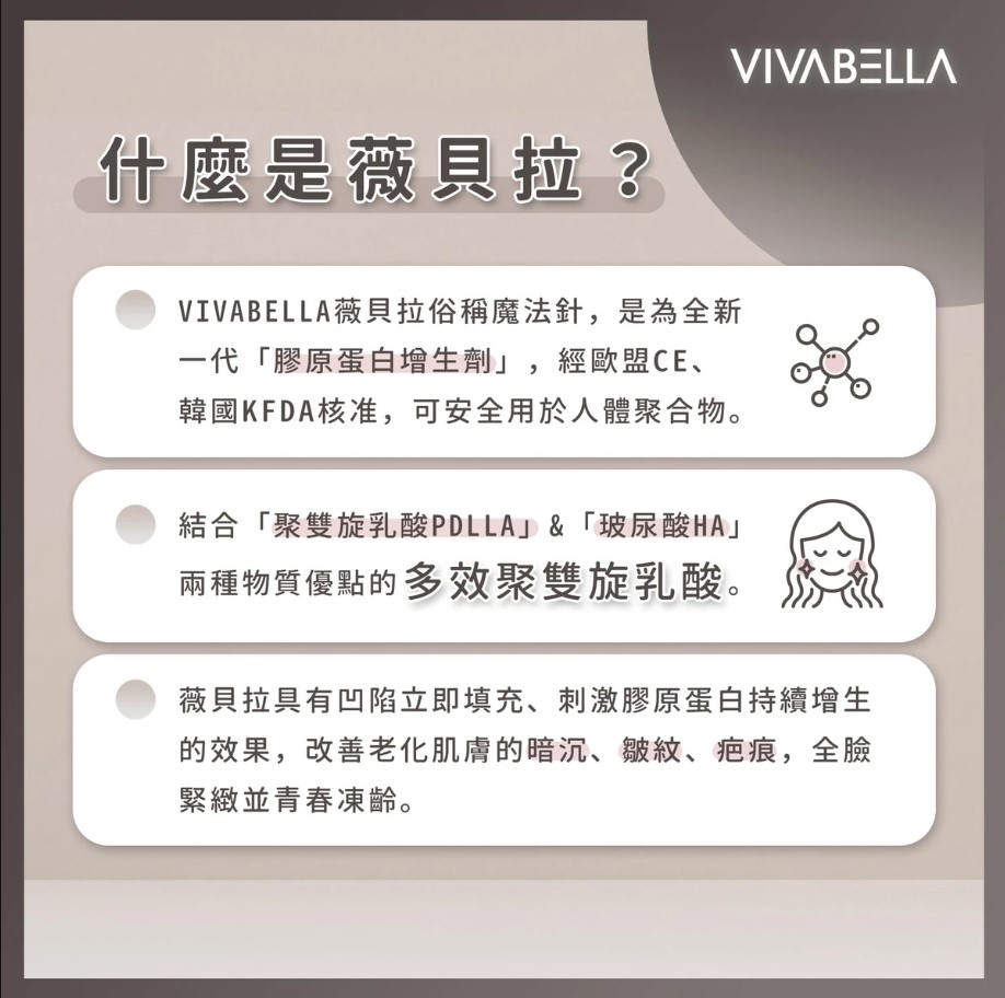 其中小分子的薇貝拉,更是目前市面商唯一可以修補真皮淺層問題的劑型。可以協助改善,脖頸紋,眼周細紋,淚溝,凹陷型痘疤,凹陷疤痕,姙娠紋,生長紋。