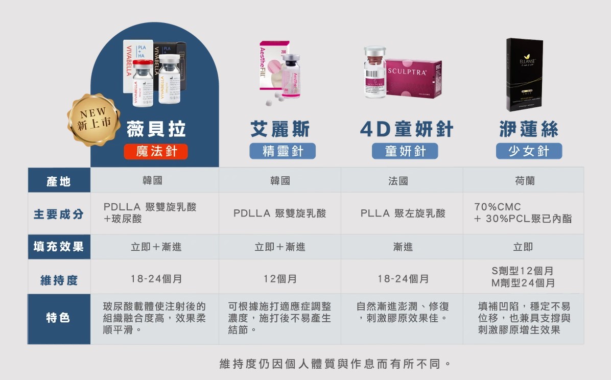 這款膠原蛋白的刺激增生劑,施打後的效果自然,和以前的童顏針或少女針相比,不易形成腫塊,無需按摩。