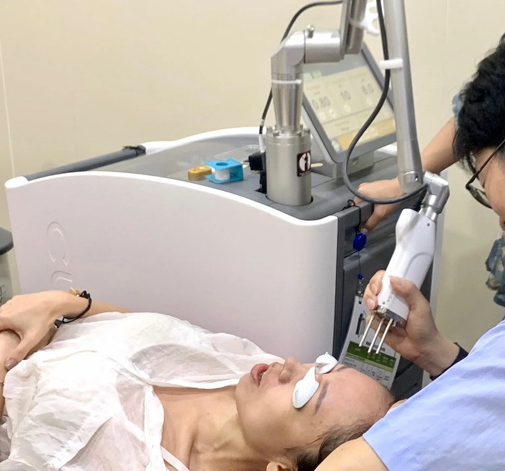 在前面的療程之間,會依照除疤需求或是抗老需求,再附加臉部無傷口局部的痘疤雷射或是射頻緊膚的無痛拉提電波。